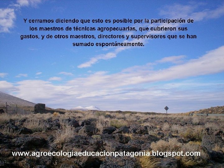 (Cont. ) Nuevos Desafíos • Se difundió el conocimiento, aportado por el INTA y Pro Huerta, de la gallina araucana (da huevos de suaves colores verdes o celestes) • Se realizó en el primer encuentro de diseño de bosquetes multipropósito (energéticos, frutales, para construcción, barreras contra el viento y paisajístico, cabos de herramientas, abonos verdes y hojas secas, ramoneo)…, promovidos por Bosques, INTA, Parques Nacionales y maestros. Pensando en los crianceros y productores más vulnerables. • Continúa la difusión de la agroecología en diversos foros.