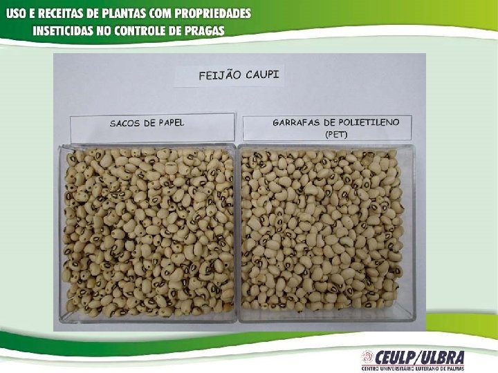 Projeto: USO DE PRODUTOS VEGETAIS NA CONSERVAÇÃO DA QUALIDADE FISIOLÓGICA DE SEMENTES DE FEIJÃO CAUPI (Vigna unguiculata) DURANTE O ARMAZENAMENTO, EM PALMAS, TOCANTINS Projeto aprovado pelo CNPq. Edital MCT/CNPq/MDA/SAF/MDS/SESAN Processo numero: 551863/2007 -2