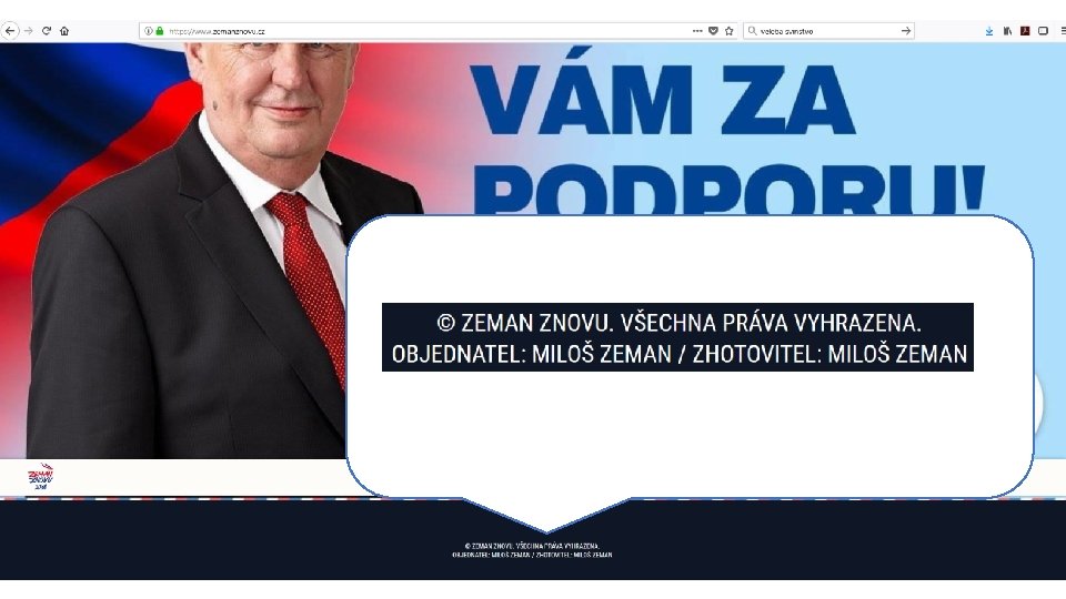 Děravá legislativa 3. Miloš Zeman ajťákem § Miloš Zeman je míněn jako symbol obecnějšího problému § Zákon v novelizované podobě nepočítá s volebními výbory, které by zajišťovaly a realizovaly agitaci kandidátů, ale předpokládá, že jediným subjektem, který se o kampaň stará, je sám uchazeč o funkci. § Zákonodárce nedomyslel fakt, že uchazeči o prezidentský mandát nejsou obvykle ajťáky, účetními ani marketéry, a i kdyby jimi byli, neměli by v kampani čas se těmito činnostmi zabývat. § Na oficiálním kandidátském webu zemanznovu. cz figuroval Miloš Zeman nejen jako zadavatel, ale též jako zhotovitel stránek. § Toho si povšimla veřejnost i ÚDH, neboť je vysoce pravděpodobné, že ve skutečnosti webové stránky tvořili Zemanovi podporovatelé a jejich práce měla být zahrnuta do nákladů kampaně jako tak zvané bezúplatné plnění. Dohled nad financováním volebních kampaní: Šerif se slepými náboji Vybrané problémy - volba prezidenta 2018