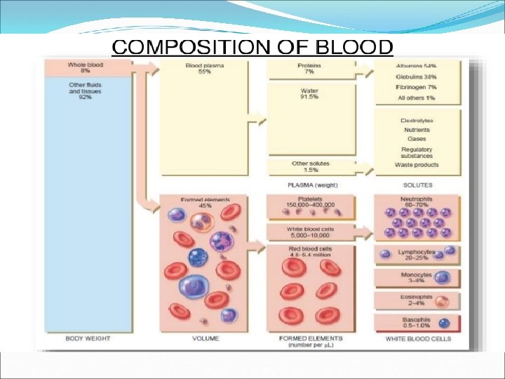 Hematokrit Total kan hacminin eritrosit % si dir. Normal hematokrit değeri erkeklerde % 40 -50 Kadınlarda ise % 35 -45 arasındadır. Bir kişinin total kan hacmi yaklaşık olarak 5. 5 litre olduğu kabul edilirse Toplam eritrosit hacmi = 0. 45 X 5. 5=2. 5 L Plazma hacmi = 5. 5 -2. 5=3 L dir.