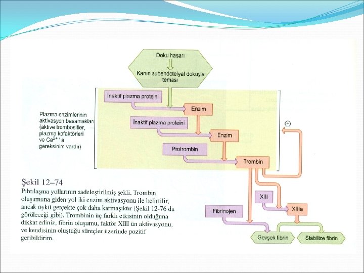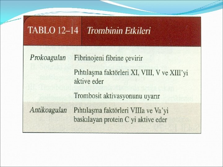 Pıhtılaşmanın sonlandırılmasında etken olan diğer mekanizmalar Aktif pıhtılaşma faktörlerinin karaciğer tarafından uzaklaştırılması Yaralan bölgedeki kan akımı pıhtılaşma faktörlerinin Trombositlerin Pıhtılaşmayı uyaran faktörlerin uzaklaştırılmasını sağlar. Trombin fibrinin polimerleşmesi sırasında ortamdan uzaklaştırılır. Plazmada bulunan Antitrombin III, heparin, protein C antikoagülan etkir.