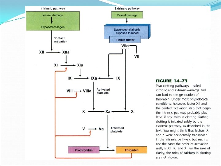 Protrombin aktivatörünün oluşması Protrombin aktivatörü gerçekte birbiriyle sürekli etkileşen iki yolla oluşur. Damar duvarı ve çevresindeki dokuların hasarı ile başlayan eksterensek yol Kanın hasarlı endotele veya negatif yüklü bir yüzeye teması ile başlayan interensek yol Her iki yol Faktör X aktivasyonu aşamasında birleşirler.