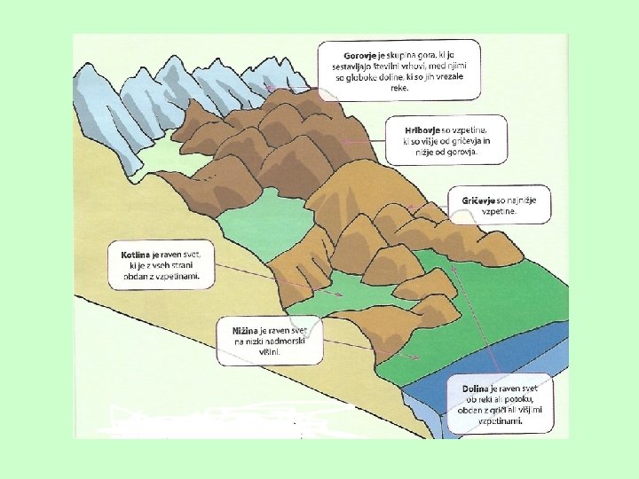 Tvoje delo: 1. Preberi še v učbeniku st. 54, 55. 2. Napiši v zvezek naslov RAZLIČNE OBLIKE POVRŠJA in prepiši Moram vedeti. 3. Dodatno delo: Opiši relief v domači pokrajini (v zvezek). 4. Odgovori ustno na vprašanja na strani 55 v učbeniku Viri: Družba 4, Radovednih 5 Slike na spletu http: //www. solcavska-panoramska-cesta. si/si/tocke-obiska/logarskadolina http: //www. o-4 os. ce. edus. si/gradiva/geomorfologija/pojem. html https: //www. slo-foto. net/galerija_slika-138138. html http: //slovoni. blogspot. com/2011/08/ljubljanska-kotlina. html https: //eucbeniki. sio. si/geo 9/2655/index 1. html