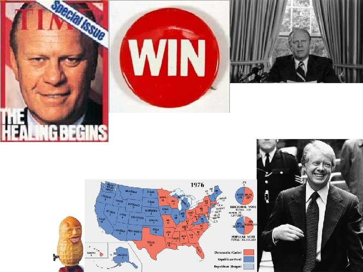 THE PRESIDENCY OF GERALD FORD (1974 -1976) “Our long national nightmare is over” Hard feelings over Nixon’s actions Ford pardoned Nixon, preventing criminal trial Economic struggles Oil prices rising and rising INFLATION (rising prices) unsuccessfully challenged by Ford’s plan to Whip Inflation Now (WIN) Jimmy Carter (D-GA) wins the presidency in 1976, promising in a down-to-earth style: “I will never tell a lie to the American people. ”