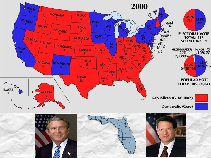 THE 2000 PRESIDENTIAL ELECTION & ITS OUTCOME Al Gore vs. George W. Bush an extension of Clinton vs. an extension of Reagan It was one of the tightest elections in US history According to the Electoral College, the first candidate to earn 270 electoral votes would win – all eyes were on Florida’s 25 votes – recounts started and stopped and started again before a Supreme Court decision put an end to it and led to George W. Bush’s victory in the election, more than a month after the election