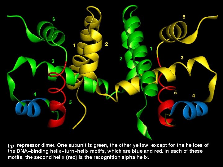The Helix-Turn-Helix motif • This motif is characteristic of proteins binding to the major DNA grove. • The proteins containing this motif recongize palindromic DNA sequences. • The second helix is responsible for nucleotide sequence recognition.