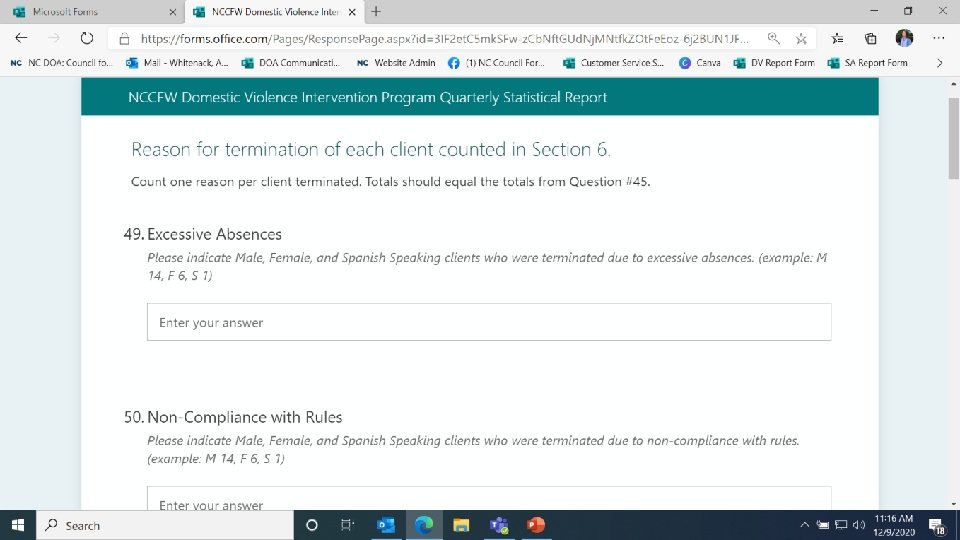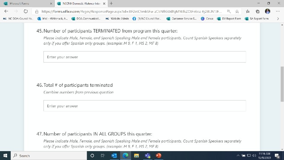 At the end of each section, we still ask for the total clients referred from any source by demographic information. These totals should be consistent with the details you provided earlier in the section.