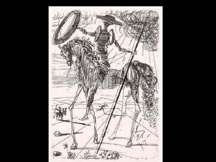 • Salvador Dalí nació en Figueres (Cataluña), en 1904 y murrió en el mismo pueblo, en 1989. Empezó a dibujar y pintar muy temprano y, en 1922, inició estudios de Bellas Artes en Madrid. Em esa época, hospedóse en la Residencia de Estudiantes, donde inició una gran amistad com el poeta Federico Garcia Lorca y el cineasta Luis Buñuel, con quién llevó a cabo numerosos proyectos artísticos vanguardistas. • Después fué a Paris, donde participó de un grupo de pintores surrealistas. • Después de um tiempo em los EUA, cuando ya era uno de los pintores más famosos del mundo, volvió a la Europa em 1948. Fué en el período que pasó en los EUA que Dalí ilustró el Don Quijote para edición de una traducción publicada en NY, en 1946.
