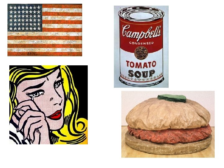 7. - Diferències amb altres solucions coetànies Dins les Segones Avantguardes i al costat del corrent abstracte, representat per artistes com De Kooning, Pollock (action painting/ dripping) o Tobey (pintura cal·ligràfica), un grup de pintors van reivindicar la figuració, entre ells Bacon i Freud. La recerca de la figuració va esclatar amb el Pop-art que s’inspirarà en productes populars de consum de masses. Els artistes no buscaven antics models sinó que es van fixar en aquells més propis del món que els envoltava i ho feien des d’una perspectiva irònica. Artistes importants en aquest estil seran: Warhol, Lichtenstein, Johns i Oldenburg.