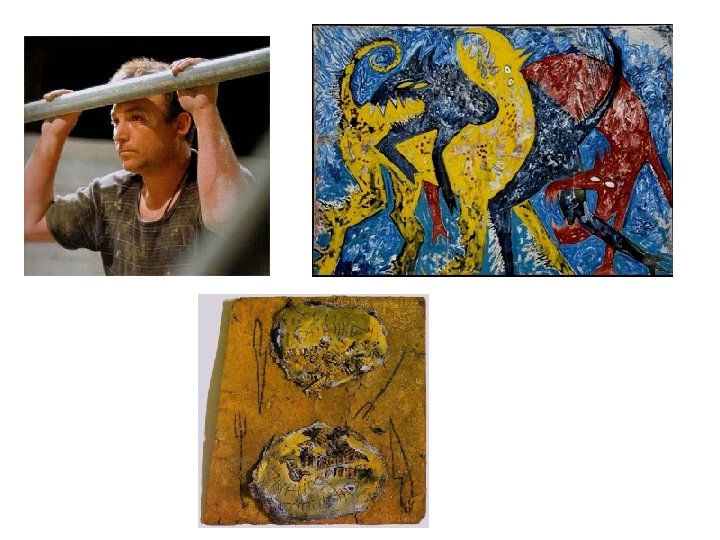 • Geometria: Diagonals • Llum: No hi ha un focus lumínic extern. Sorgeix dels mateixos colors. • Cromatisme: Utilització de colors tal com surten del tub (rosa pompeià, groc, blau, vermell) però embrutits i barrejats pel fet voluntari de no netejar els pinzells en el moment de pintar. Usa els colors per configurar una pintura molt empastada.