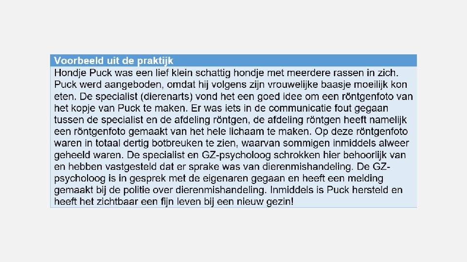 VERSCHIL MISHANDELING EN VERWAARLOZING • Bij dierenmishandeling is bijna altijd sprake van opzet • Bij dierenverwaarlozing is in mindere mate sprake van opzet, maar meer van onwetendheid of onmacht