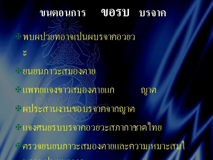 Contraindication X Unknown cause of death X Extracranial malignancy X HIV + X Uncontrolled sepsis especially fungal