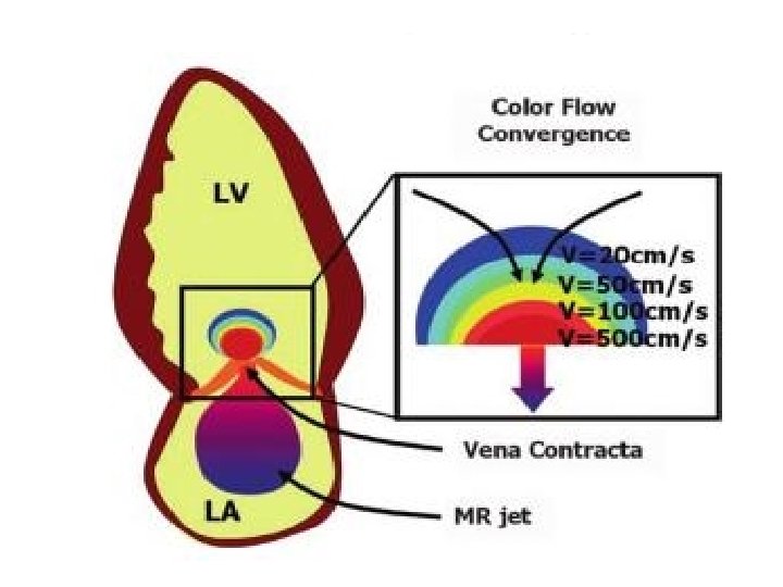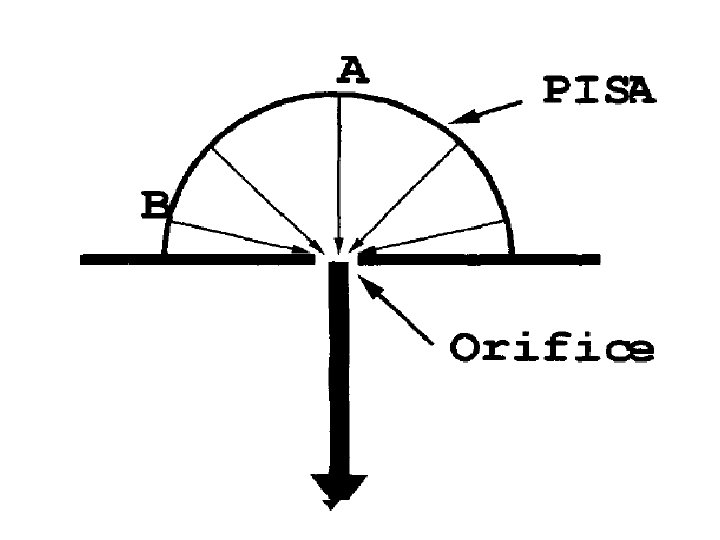 Proximal Isovelocity Surface Area (PISA) • Proximal Isovelocity Surface Area (PISA) method is based on the continuity equation. • When a flow passes through a narrow orifice, as it approaches the narrowest region, there is a flow convergence and flow acceleration. • PISA is the surface area of the hemisphere at the aliasing region of the flow convergence. • PISA increases with lower aliasing velocity.