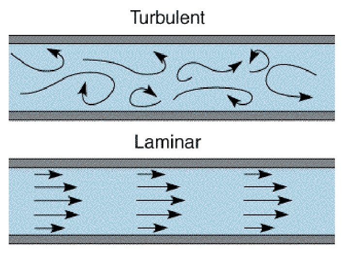 Types of flow Laminar flow Shape of parabola Concentric layers, each parallel to vessel wall Velocity of each layer differs Maximal velocity is at centre of vessel Decreasing profile towards peripheries
