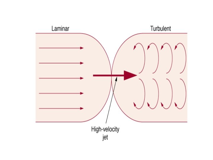 Turbulent flow • Obstruction produce increased velocities, flow vortices • Whirlpools shed off in different directions producing variable velocities- chaos • Predicted by Reynolds number • Reynolds number depends on Re=( ρ x c x D)/v ρ-Density of blood D-Vessel diameter c-Velocity of flow V-viscosity