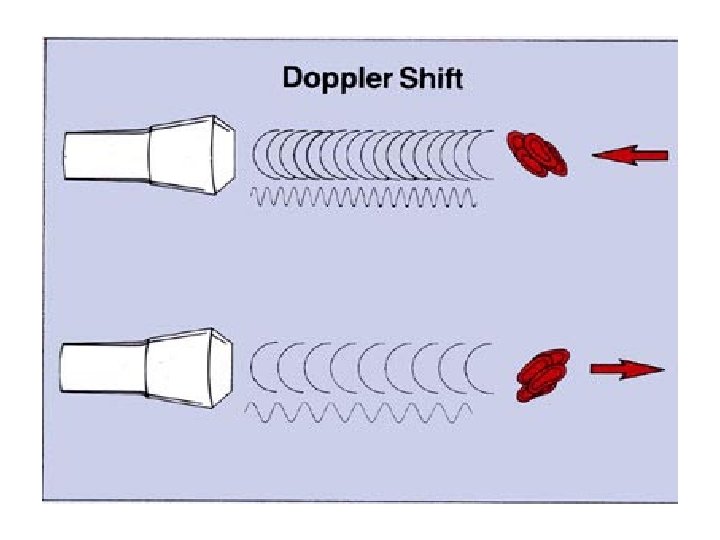 Why the factor 2? • Double doppler shift 1 st shift-transducer stationary source, RBC the moving receiver 2 nd shift is when, RBCs are moving source and transducer is the stationary receiver.