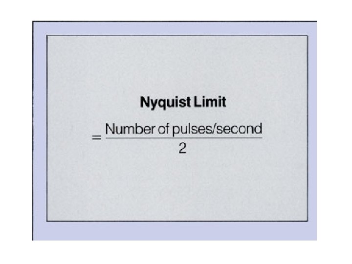 Nyquist Limit • The Nyquist limit defines when aliasing will occur using PW Doppler. • The Nyquist limit specifies that measurements of frequency shifts (and, thus, velocity) will be appropriately displayed only if the pulse repetition frequency (PRF) is at least twice the maximum velocity (or Doppler shift frequency) encountered in the sample volume.