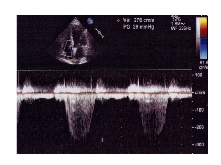 Estimation of RVSP by TR • TR doppler signal represents the pressure difference between RV and RA during Systole • RVSP-RAP=4(V TR 2 ) • In absence of RVOT obstruction RVSP=Pulmonary artery systolic pressure.
