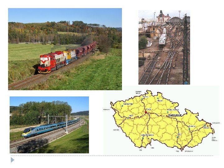 Železniční doprava Druhou naší nejvýznamnější dopravou je doprava železniční, která je vhodná pro přepravy na střední a dlouhé vzdálenosti zvláště hromadných a rozměrných substrátů v ucelených vlacích. Mezi její přednosti patří minimální závislost na počasí, schopnost zvládnout silné zátěžové proudy a nezávislost na kongescích v silniční dopravě, pokud má dostatečnou kapacitu. Evropská Unie v současné době usiluje o „revitalizaci“ železnic, která spočívá v modernizaci železniční dopravy a postupném převodu dálkových přeprav a kombinované dopravy na železniční dopravu. Mezi nedostatky naší současné železniční dopravy patří nízká její rychlost, nepravidelné jízdy nákladních vlaků a nemožnost určení doby dodání zásilek