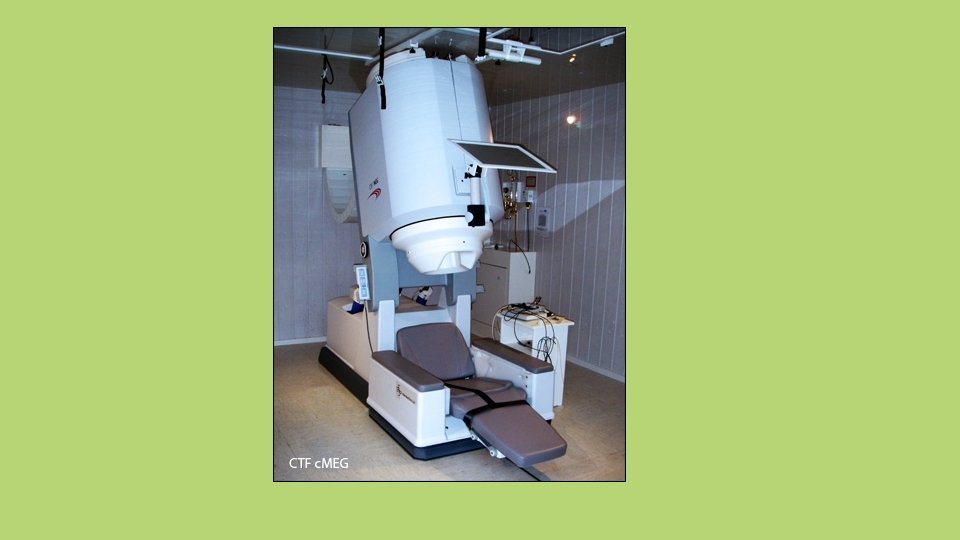 Métodos • As crianças foram submetidas a 2 minutos de atividade espontânea, em um exame chamado Magnetoencefalografia • Foram colocadas em posição supina, olhando para uma “carinha feliz” ( ) posicionada a 40 cm acima de seus olhos • A Magnetoencefalografia e uma técnica neurofisiológica não-invasiva que mede os campos magnéticos gerados pela atividade neuronal (veja figura a seguir) • Os dados foram filtrados em frequências alfa (8 -14 Hz) e gama (30 -60 Hz) • As frequências alfa são predominantes quando o cérebro esta em “repouso” ou em “marcha lenta”. As frequências gama ocorrem quando o cérebro esta ativo