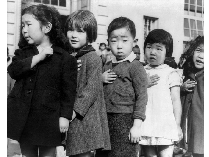 Other Works by Lange First-graders, some of Japanese ancestry, at the Weill public school, San Francisco, Calif. , pledging allegiance to the United States flag. The evacuees of Japanese ancestry will be housed in War relocation authority centers for the duration of the war