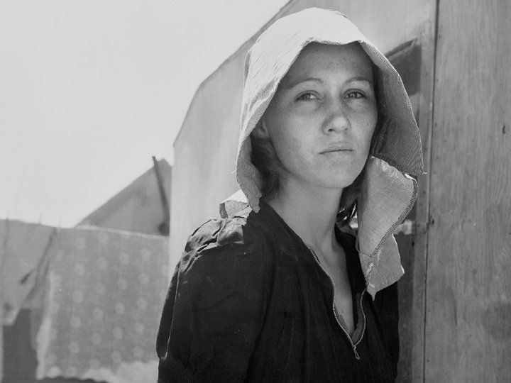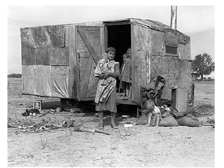 • The image of a worn, weather-beaten woman, a look of desperation on her face, two children leaning on her shoulders, an infant in her lap; has become a photographic icon of the Great Depression in America.