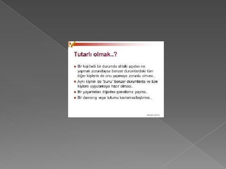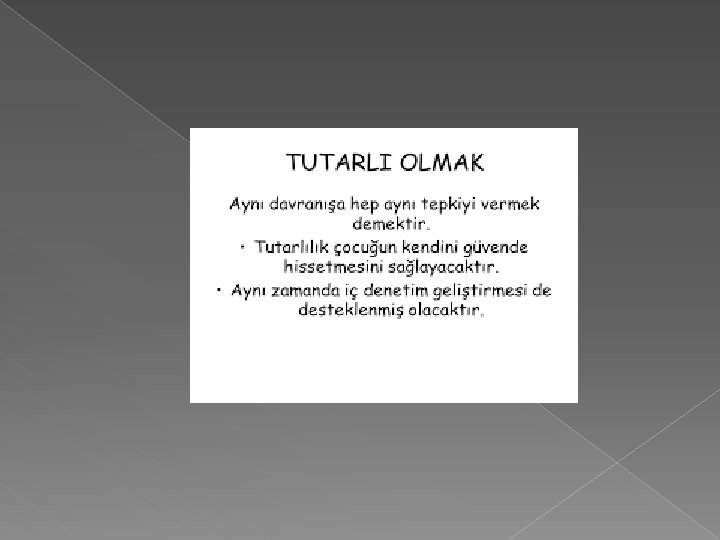 TUTARLİLİK � Olculu, agirbasli, temkinli kimselerin toplumda etkin bir yerleri, ayricalikli bir kisilikleri vardır. Bu ayricaliklari sebebiyle onlara kolay kimse ilişkiye cesaret edemez. Onları hirpalamaya öyle herkesin gücü yetmez. Dolayısıyla ister istemez saygı görür ve yerlerini korurlar.