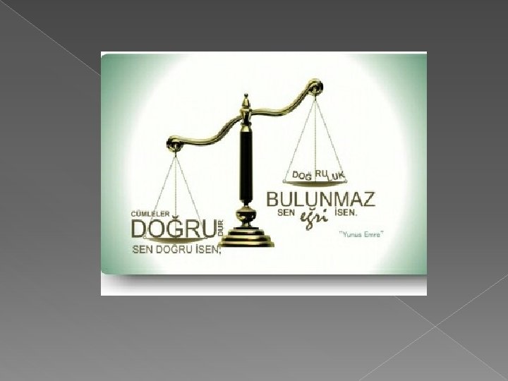 Yer yuzunde senin ayrica dost aramana luzum yok, dogruluk senin dostun ve yardımcındır. Farabi Doğruyu konuşmak için iki kişi ister: Doğru söyleyen, doğru dinleyen. Hacı bektaşi veli