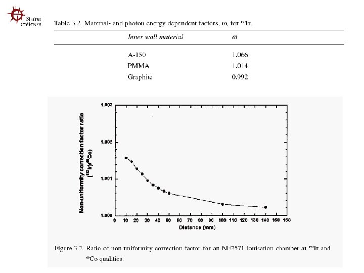 Ikke-uniform korreksjonsfaktor • Når fotonene går gjennom indre vegg av ionisasjonskammeret genereres det sekundære elektroner • Ikke-uniform fluens av fotoner fører til ikke -uniform elektron fluens i luftkaviteten. • Korreksjonsfaktor avhengig av – – Dimensjon og form på kammer Måleavstand, kildegeometri (punkt, lineær) Materialet på den indre veggen av kammeret Energien på fotonene