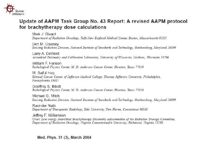 Hvor finner man TG 43 -data? ? ? AAPM-TG 43 formalisme Hver enkelt type kilde har et eget datasett: Monte Carlo beregninger og oppmålinger gir data for implementering i doseplansystem Eksempel:
