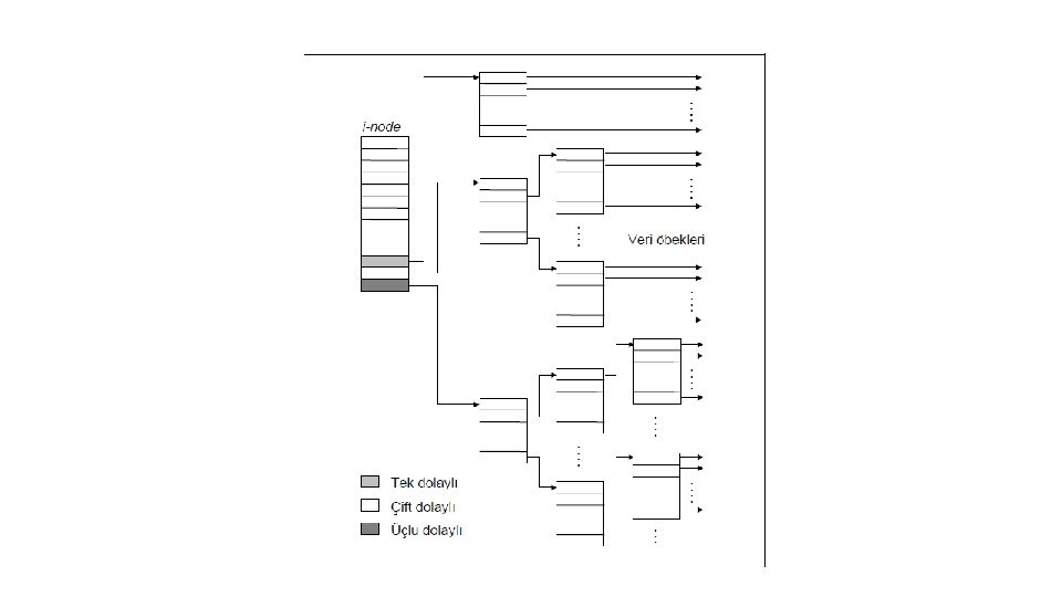 Fiziksel Dosya Depolama • Bitişik • Ayrık • Bağlı • İndexli • Örnekler • • DOS/Windows FAT UNIX i-nodes Windows NTFS Serbest boşluk yönetimi