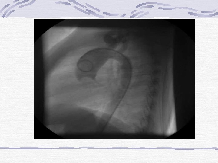 Aort Koarktasyonu § Çıkan – inen aorta § § § gradienti >20 mm Hg veya hipertansiyon varsa girişim endikedir Küçük çocuklarda rekoarktasyon oranı yüksektir Anevrizma gelişebilir Rekoarktasyonlarda ilk seçilecek tedavidir