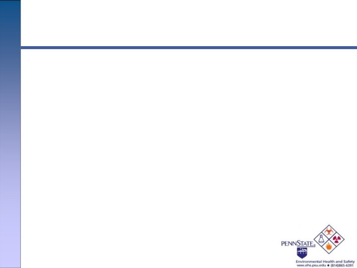 Acknowledgements • Departmental Safety Officers - Roger Dunlap (Chemical Engineering) - Larry Johns (Chemistry) - Libby Kupp (MATSE) - Scott Henninger (MATSE) • Kate Lumley-Sapanski (EHS at Penn State) • Pankaj Gupta, Lori Seiler, and colleagues at Dow