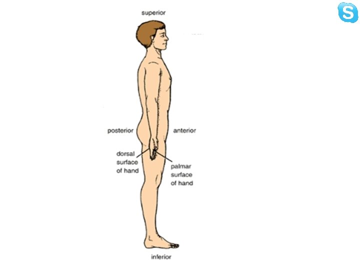 The anatomical position refers to the body position as if the person were standing upright with the: Ø Head, eyes, and toes directed anteriorly (forward) Ø Arms adjacent to the sides with the palms facing anteriorly Ø Lower limbs close together with the feet parallel. 3