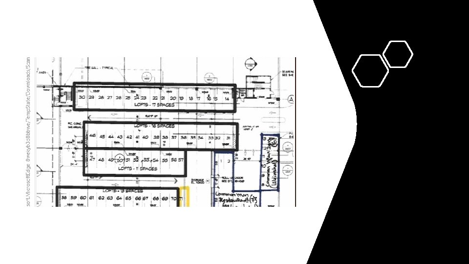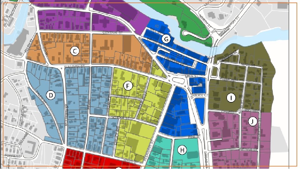 Parking Study • • • The area with the highest utilization is in zone G, close to Opera House Square. This area is also the only area where utilization increases in the evening The current number of parking spots downtown in zones F and G is 846. If all of the building's downtown were full and used there would need to be around 1, 600 parking spots. With “shared parking” there can be about 20% less spots and still be acceptable, around 1280 spots. With shared parking you need less spots for each business if you can make the area pedestrian friendly so as to encourage 1 customer to park and walk between multiple businesses Zone C has 343 spots and only needs 230 for full buildings. That is an excess of 87 spots that are within 1, 200 feet of Pleasant St. Zone H has 395 spots and would only need 227 for full buildings. With these spots and the additional 112 in the Revitalization Plan downtown would come to 1, 213 spots.