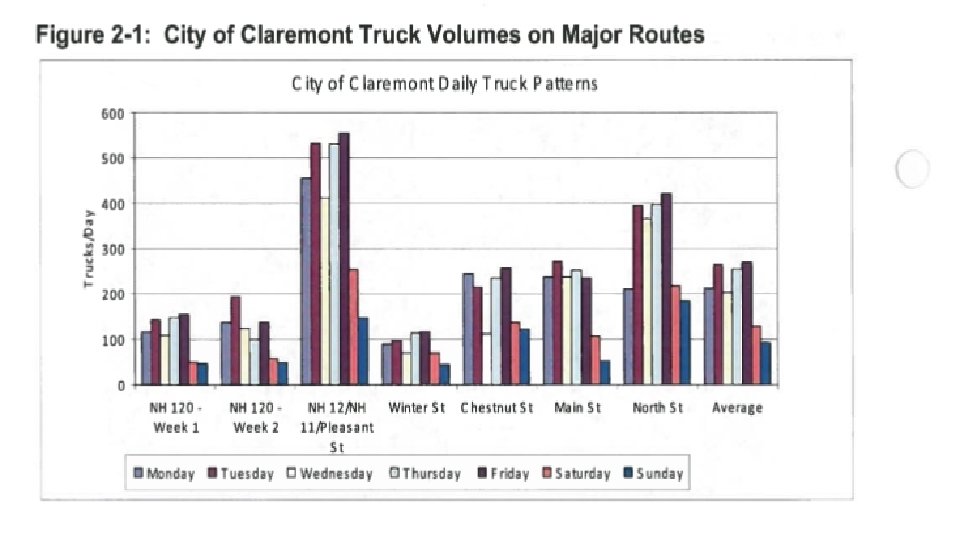 • Truck traffic increased since 1986 • 40% of the truck traffic is "pass through" traffic, not making stops in Claremont • Bad signage throughout town leads to truck confusion and Pleasant St is seen as the easiest option 2009 Truck Route • There have been historical attempts to link the north and south entrances of the city without using the downtown area • Vibration from truck traffic is detrimental to historic building structures • SE quadrant( Charlestown Rd area) would see future industrial growth • As industry expands in other areas of town, Industrial Blvd, Charlestown Rd, etc. , the more trucks we will have coming into town and hence downtown