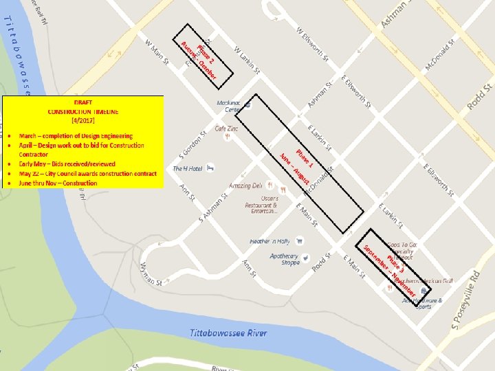 Downtown Midland Streetscape Redevelopment • April construction contract out for bid • May 22 Hire construction contractor • June 24 -26 week construction process begins