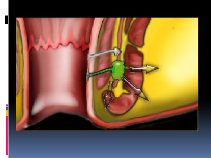 Pielonidal sinus Small abscess just above the nates No relation with sphincter complex