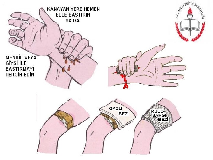 DIŞ KANAMALARDA İLKYARDIM-1 • Yaralının durumu değerlendirilir. (CAB) • Yardım çağırılır • Yara/kanama değerlendirilir. • Kanayan yer üzerine temiz bir bezle bastırılır