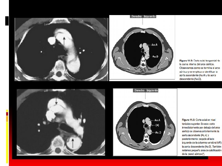 Protocolo de realização do exame Inclui 2 fases: - Fase sem contraste: extensão da croça à bifurcação da aorta. - Útil para diagnóstico de hematoma intramural e de derrames hemorrágicos (pleural, pericárdico ou mediastinal). - Colimação de 2, 5 mm.