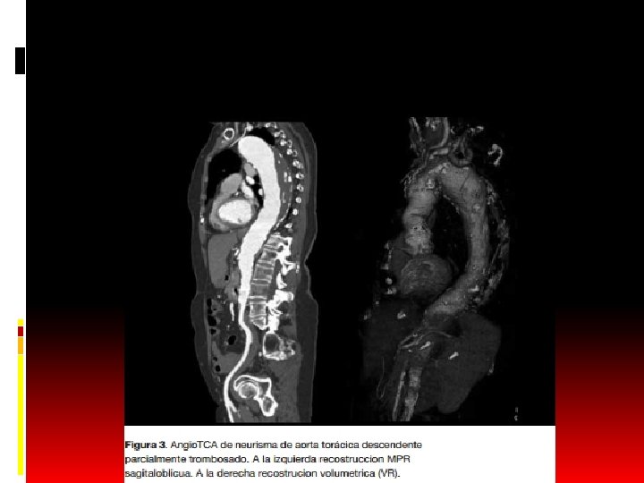 Complicações Lesão coronariana e da valva aórtica: - O acometimento das coronárias é difícil de ser avaliado pela angiotomografia, a não ser que se use o gating cardíaco. - A ectasia do anel valvar é um sinal indireto de acometimento de valva aórtica.