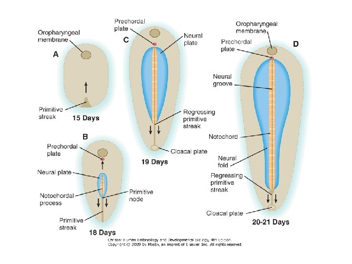 Induction of the Neural Tube epiblast BMP-2 BMP-4 follistatin chordin noggin (BMPinhibition) N-Cadherin default pathway inhibition of activin default mesoderm inhibition of default epidermis E-cadherin neural tube Numerous signal proteins inhibit the activity of BMP/Activin, thereby maintaining the default mechanism ( neural tube )