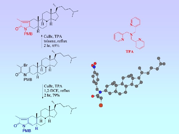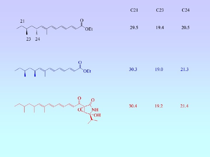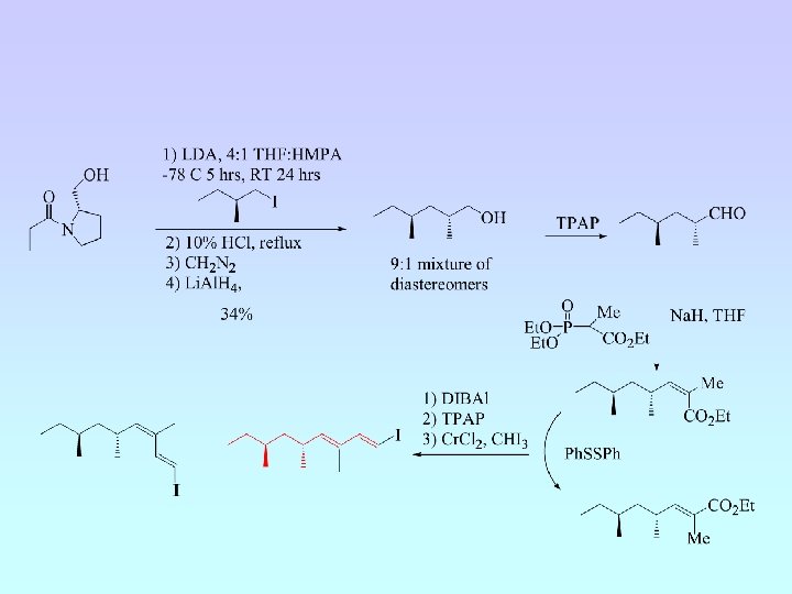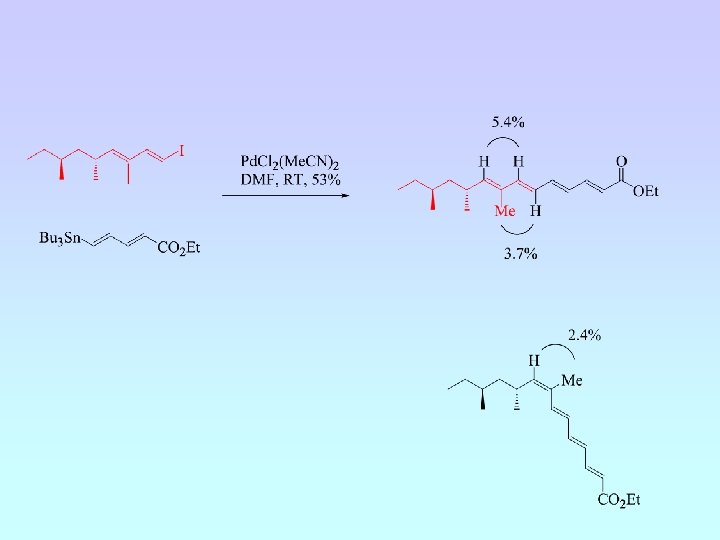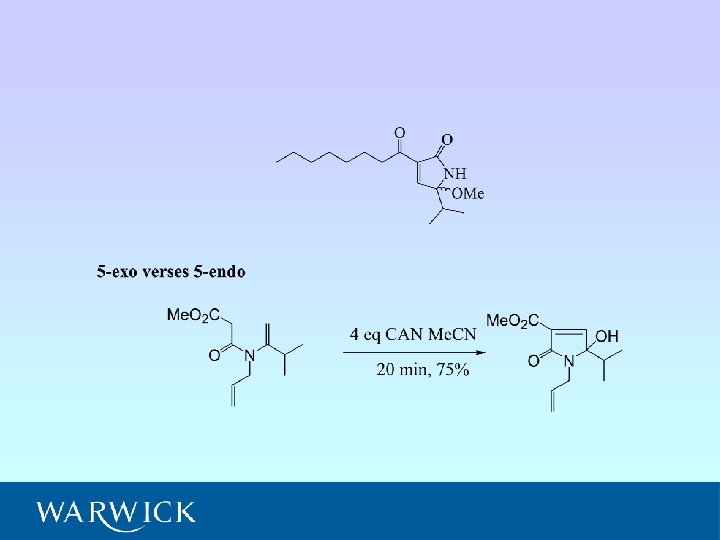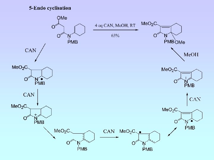 • Five cyclisation products isolated; 6 -endo (A and B) and 5 -exo (C, D and E) • Ratio A : B : C : D : E = 6. 5 : 4. 5 : 1. 8 : 1. 0 : (crude 1 H NMR) • NMR experiments have confirmed relative stereochemistry of C and D • Ratio 6 -endo : 5 -exo = 1. 5 : 1 (crude 1 H NMR) = 2 : 1 (isolated)