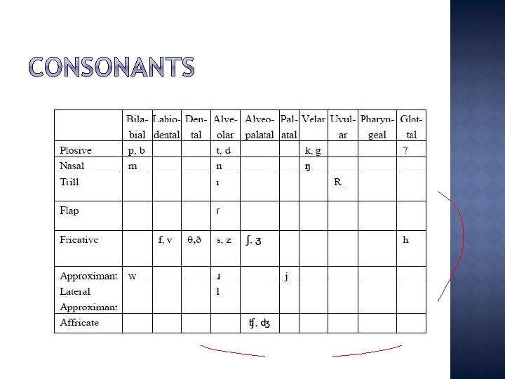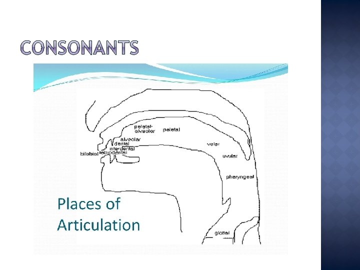 � Consonants can be classified according to: 1. Place of articulation 2. Manner of Articulation