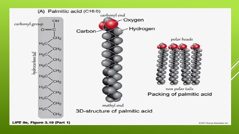 Introduction v PALMITIC ACID Palmitic acid, or hexadecanoic acid in IUPAC nomenclature, is the most common saturated fatty acid found in animals, plants and microorganisms. v Its chemical formula is CH 3(CH 2)14 COOH, and its C: D is 16: 0. As its name indicates, it is a major component of the oil from the fruit of oil palms (palm oil). v Palmitic acid can also be found in meats, cheeses, butter, and dairy products. v Palmitates are the salts and esters of palmitic acid. v The palmitate anion is the observed form of palmitic acid at physiologic p. H (7. 4). v Aluminum salts of palmitic acid and naphthenic acid were combined during World War II to produce napalm. v The word "napalm" is derived from the words naphthenic acid and palmitic acid.