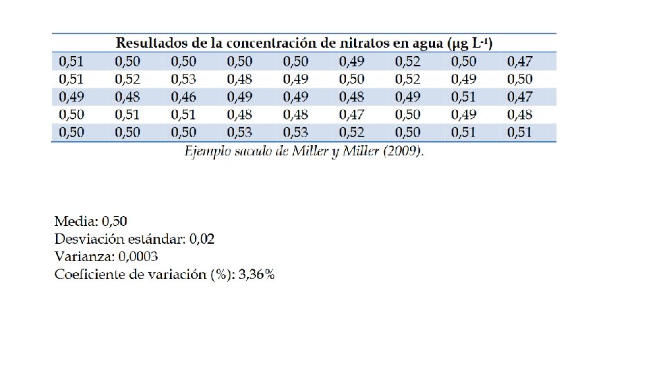 Variables Una variable estadística es una propiedad que puede fluctuar y cuya variación es susceptible de adoptar diferentes valores, los cuales pueden medirse u observarse. Cualitativas o atributos: sexo, estado civil, color de una sustancia. Cuantitativas continuas: variables con cualquier valor en un intervalo de números reales. Una variable es continua si teóricamente puede tomar cualquier valor en el intervalo. Ejemplos: peso, temperatura, velocidad, volumen. Cuantitativas discretas o discontinuas: variables cuyos valores son numerables No puede asumir todos los valores dentro de un intervalo, sino un número finito. Ejemplos: tiempo fermentación de la cerveza (días), número de partículas, bacterias por mililitro.