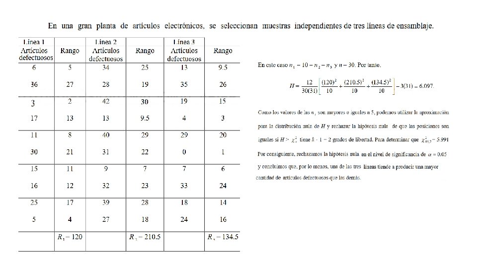 Pasos de la prueba: 1. Planteamiento de hipótesis. 2. Se ordenan las n observaciones de menor a mayor, y se les asignan rangos desde 1 hasta n. 3. Se obtiene la suma de los rangos correspondientes a los elementos de cada muestra. 4. Calcular estadístico de prueba. 5. Buscar K en la Tabla de Chi-Cuadrado. 6. Conclusiones.