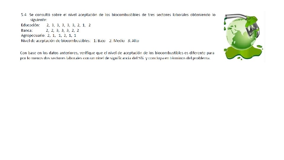 Prueba de hipótesis Kruskal Wallis (tres o más poblaciones) • Probar si un grupo de datos proviene de la misma población. • Se emplea cuando se quieren comparar tres o más poblaciones. • Es el equivalente a un análisis de varianza de una sola vía. • No requiere supuesto de normalidad. • No requiere supuesto de varianzas iguales (homogeneidad de varianzas). • Compara esencialmente los rangos promedios observados para las k muestras, con los esperados bajo Ho.