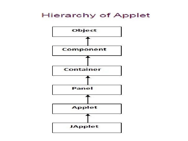 As displayed in the above diagram, Applet class extends Panel class extends Container which is the subclass of Component. Lifecycle of Java Applet 1. Applet is initialized. 2. Applet is started. 3. Applet is painted. 4. Applet is stopped. 5. Applet is destroyed.