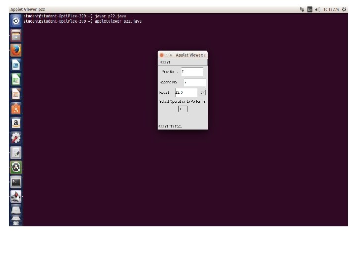 l 2=new Label("Second No. : -"); add(l 2); t 2=new Text. Field(10); add(t 2); l 3=new Label("Result : -"); add(l 3); t 3=new Text. Field(10); add(t 3); b=new Button("OK"); add(b); l 4=new Label("Select Operation to Perform : ");